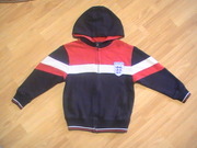 Спортивная кофта известной марки Mark & Spenser, производитель Бангладеш, на бирке указан рост 116см, 5-6лет, состав ткани 100% хлопок, внутри мягусенькая баечка.Длина по спине 45см, плечо 12см, ширина плеч 38см, длина рукава от плеча 40см, ширина под рукавами 41см, ширина резинки внизу 31см.