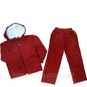 Костюм состоит из 2 предметов: кофта с капюшоном на молнии и штаны. Материал: плащевая ткань на х/б подкладке. Расцветка: зеленая и красная Размеры: 28 (104)- 220 грн.